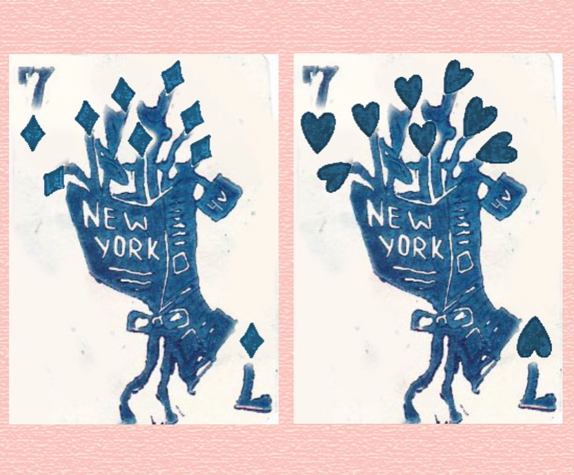 Functional and decorative card deck created via lino-cuts of each card, then scanned and formatted to create prints. This deck encapsulates many of my favorite things - dogs, rain, San Francisco, flowers, etc..